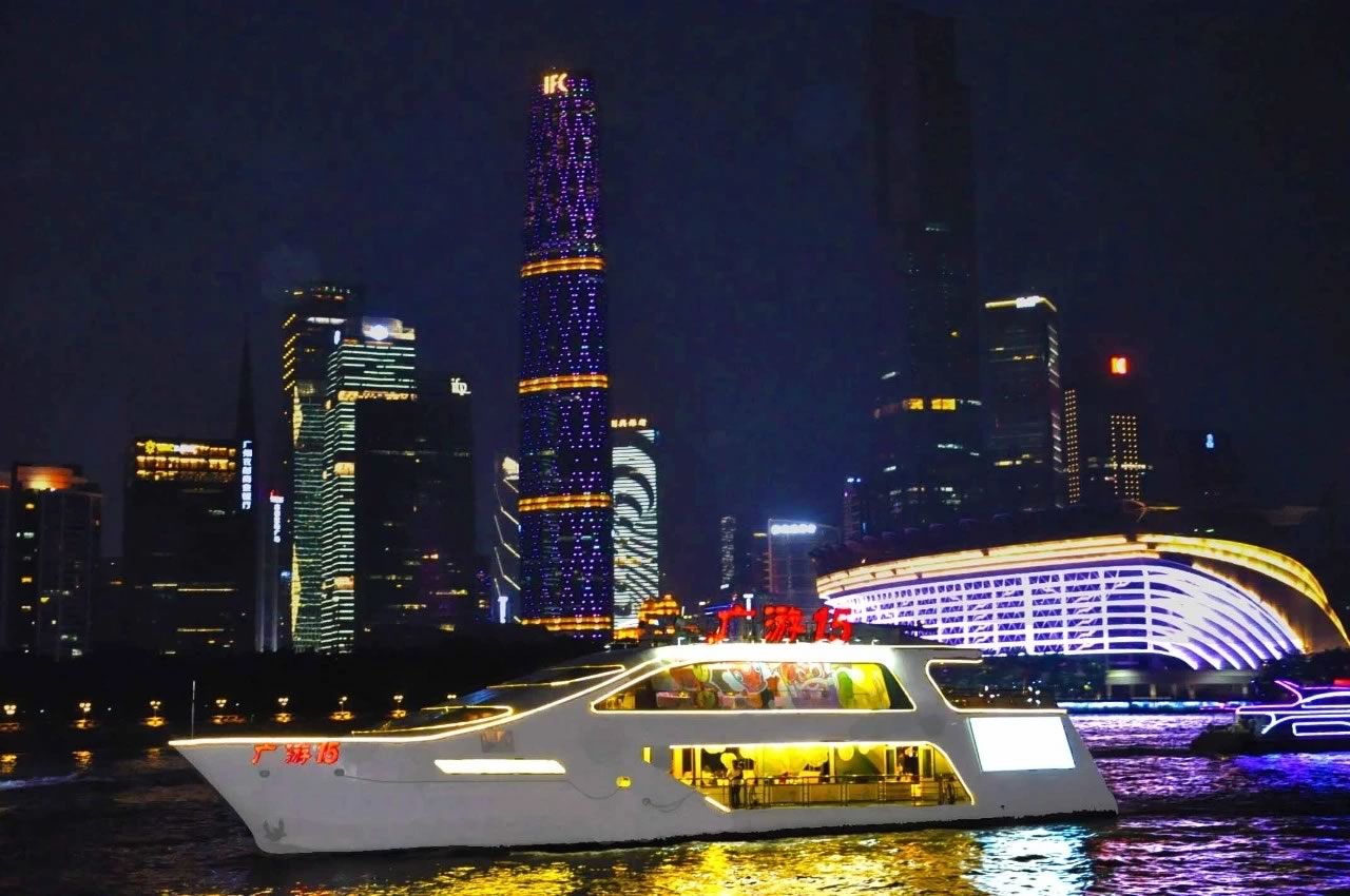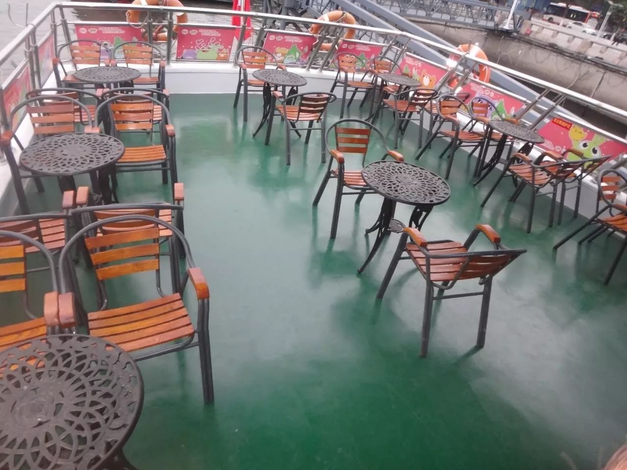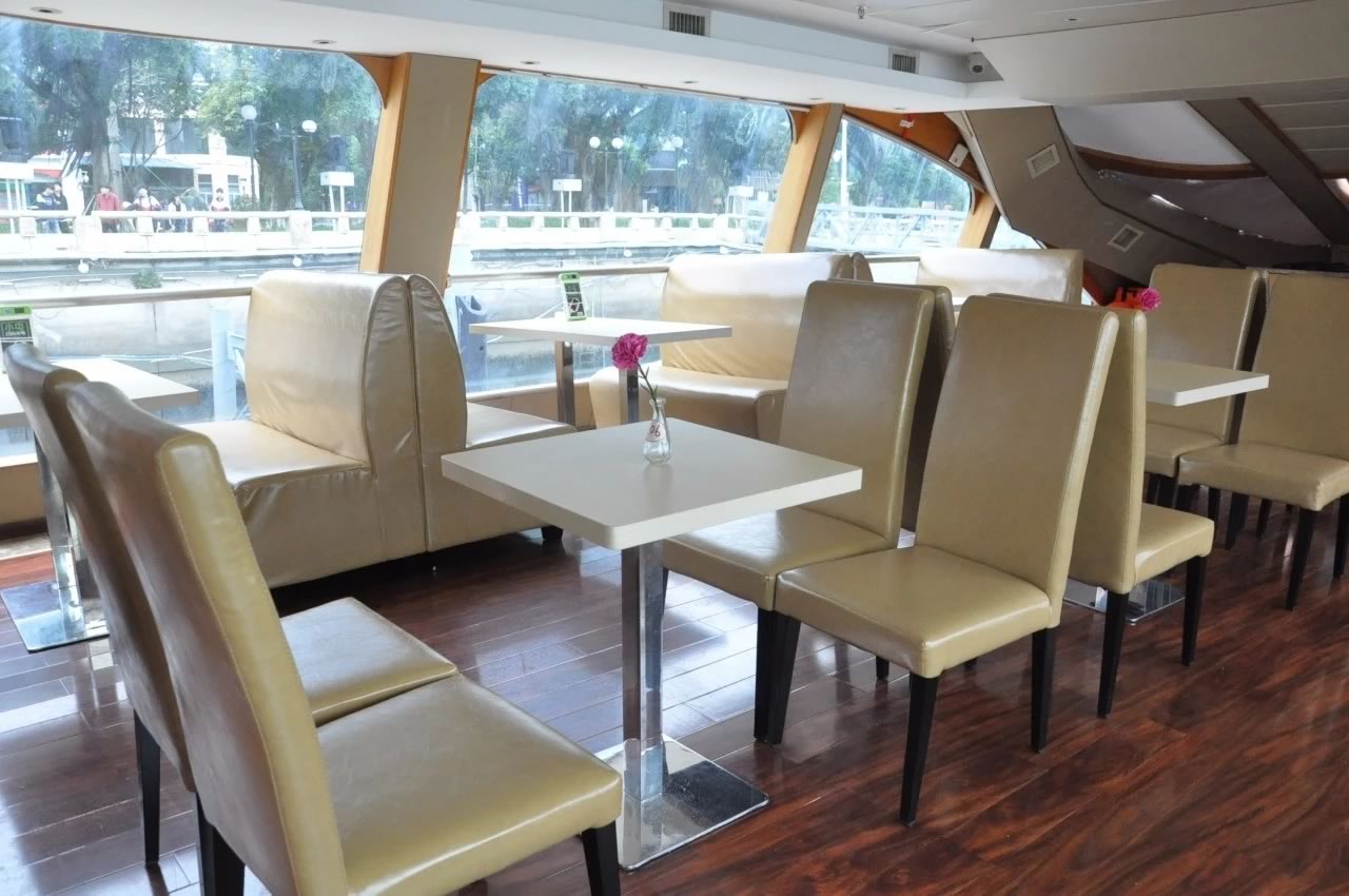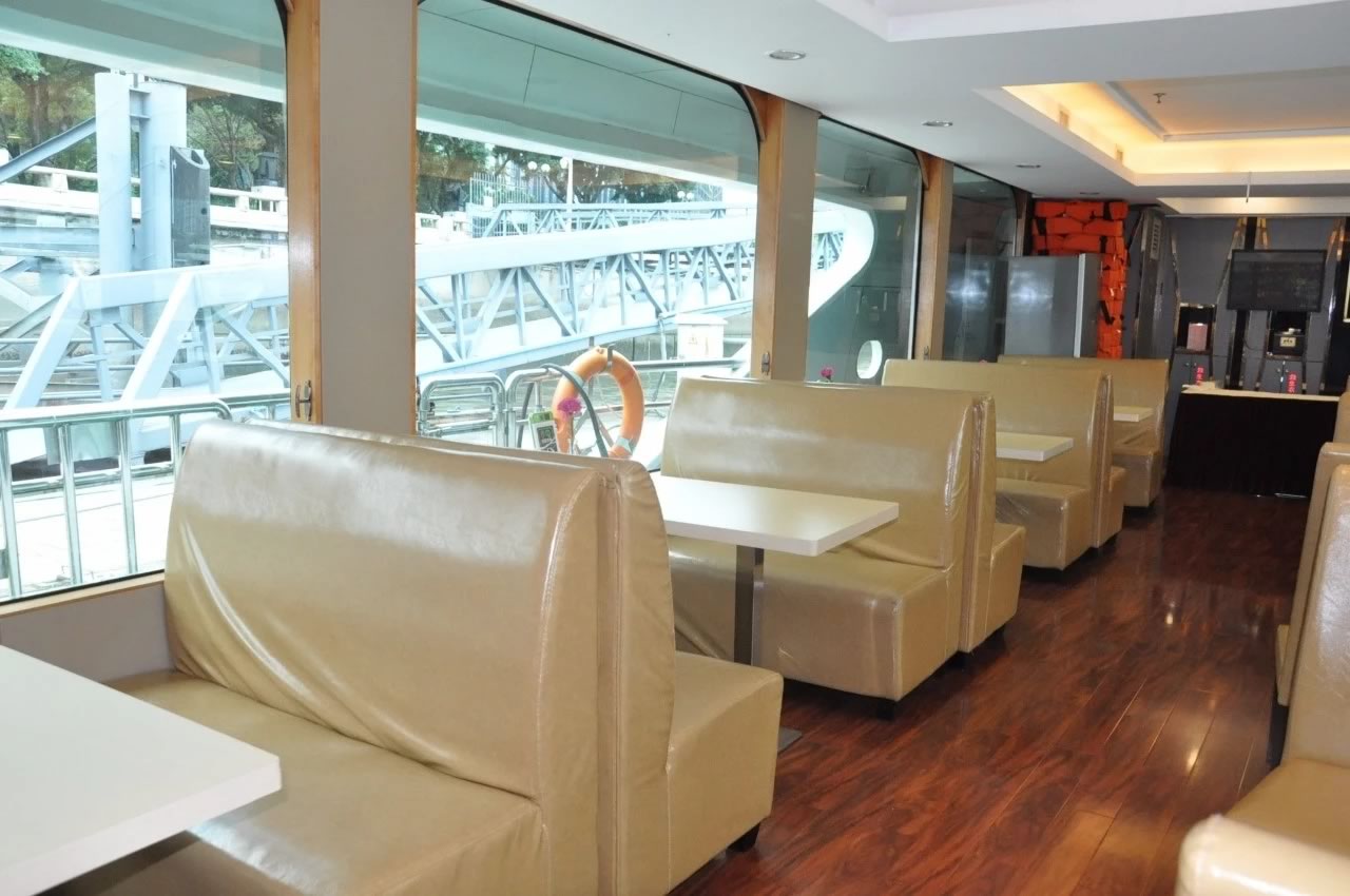 199客位双层游船,一楼空调大厅设100座位,二层露天观光平台设66座。一楼大厅配有先进语音播放系统,全落地玻璃窗透明设计使船具有很好的观光性。游船二楼为360度无遮拦观景平台,让您无论身处何方整个羊城美景一览无遗。